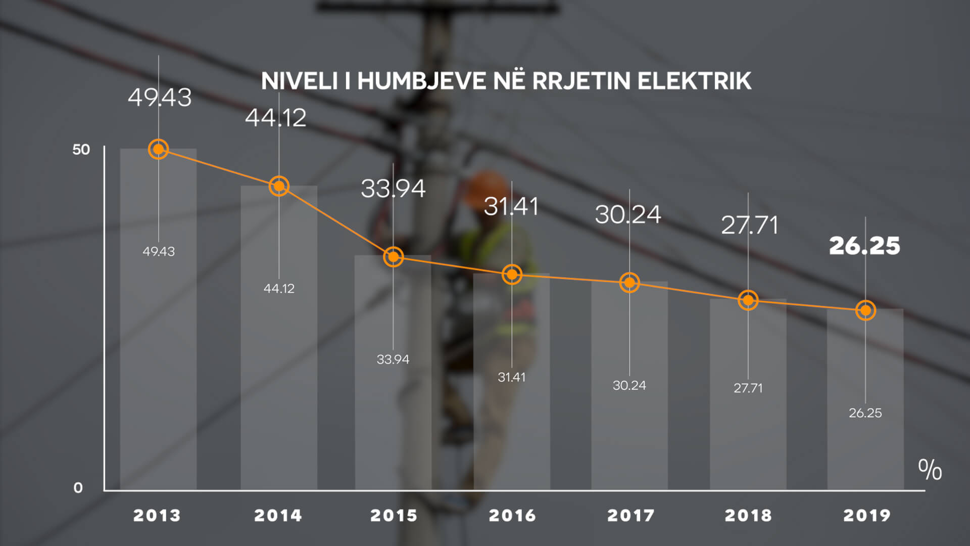 Të dhënat e 3-Mujorit të parë të vitit, publikuar nga Operatori i Shpërndarjes së Energjisë Elektrike tregojnë se niveli i humbjeve në rrjetin e shpërndarjes ka zbritur në 26,2%. Krahasuar me të njëjtën periudhë të një viti më parë, rezulton të jenë regjistruar 1,46% më pak humbje. Kujtojmë se në vitin 2014 kur nisi reforma në energji, 3-Mujorin e parë të vitit niveli i humbjeve shkonte në 44,12%.